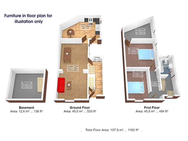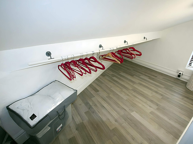 Upstairs, there are two well proportioned bedrooms with one providing an additional storage area for those who pack for all eventualities.